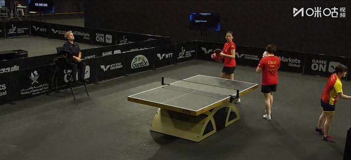 比赛开始后,纵歌曼选择主动进攻,试图用快节奏打破佐藤瞳的防守,但佐藤瞳的削球功底更胜一筹,精准地化解纵歌曼的进攻。