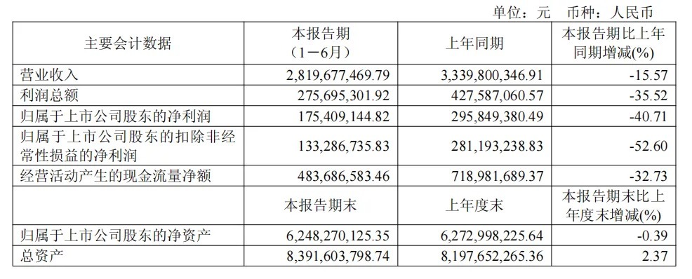 2025年上半年,公司实现营业收入28.2亿元,同比下降15.6%;归母净利润1.75亿元,降幅达40.7%;扣非归母净利润为1.33亿元,同比下滑52.6%。对于营收下滑的原因,绝味食品表示主要是报告期内销量下降。